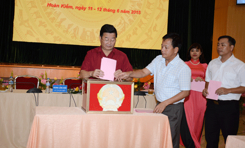 Các đại biểu HĐND quận bỏ phiếu bầu bổ sung các chức danh của HĐND quận Hoàn Kiếm khóa XVIII, nhiệm kỳ 2011 – 2016.