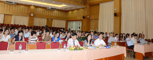 Các đại biểu HĐND quận biểu quyết các nghị quyết tại kỳ họp thứ 11 HĐND quận Hoàn Kiếm khóa XVIII, nhiệm kỳ 2011 – 2016.