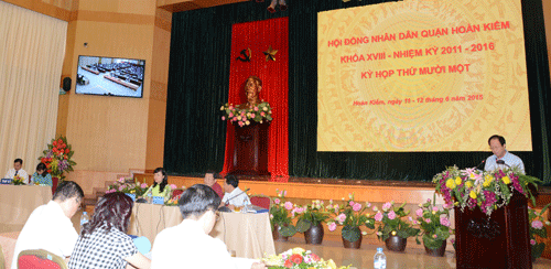 Đồng chí Dương Đức Tuấn – Phó bí thư Quận ủy, Chủ tịch UBND quận trình bày tờ trình của UBND quậnvề việc đề nghị bổ sung chức danh Ủy viên UBND quận nhiệm kỳ 2011 – 2016.