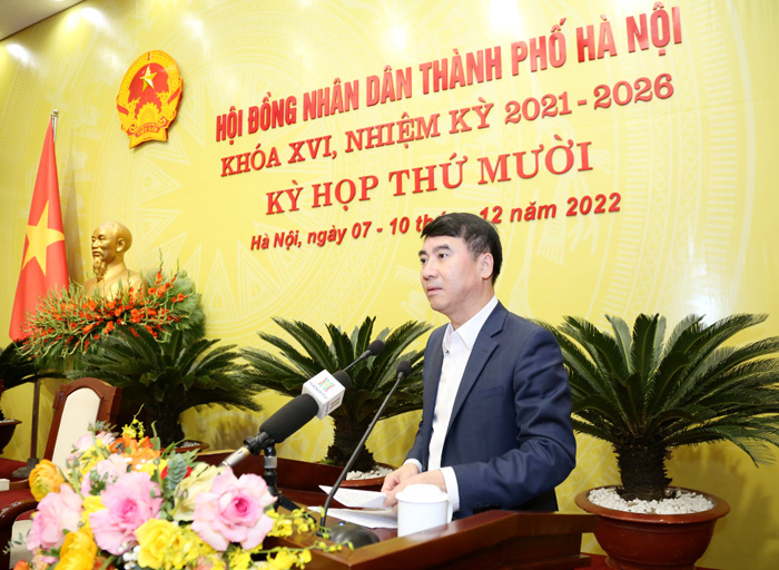 Đầu giờ sáng, báo cáo tổng hợp ý kiến thảo luận tổ đại biểu HĐND thành phố, Phó Chủ tịch Thường trực HĐND thành phố Phùng Thị Hồng Hà cho biết, tại phiên làm việc buổi chiều ngày 7/12/2022, HĐND thành phố tổ chức thảo luận 5 tổ đại biểu về 5 nhóm nội dung quan trọng. Các tổ đại biểu HĐND thành phố đã thảo luận sôi nổi, thẳng thắn, chất lượng với 55 lượt đại biểu phát biểu với gần 200 nội dung liên quan đến kết quả thực hiện kế hoạch phát triển kinh tế - xã hội năm 2022 và kế hoạch phát triển kinh tế, xã hội năm 2023 của Thành phố; phân cấp nguồn thu, nhiệm vụ chi giữa các cấp ngân sách; định mức phân bổ ngân sách thành phố Hà Nội và tỷ lệ phần trăm phân chia nguồn thu giữa các cấp ngân sách giai đoạn 2023-2025; đánh giá tình hình thực hiện ngân sách năm 2022; dự toán ngân sách địa phương và phân bổ ngân sách cấp thành phố năm 2023; phê duyệt chủ trương đầu tư, điều chỉnh chủ trương đầu tư một số dự án sử dụng vốn đầu tư công của thành phố Hà Nội; kết quả thực hiện Nghị quyết số 04/NQ-HĐND ngày 8/4/2022 của HĐND thành phố về biện pháp đẩy nhanh tiến độ đầu tư, tập trung xử lý các dự án vốn ngoài ngân sách có sử dụng đất chậm triển khai trên địa bàn thành phố Hà Nội.