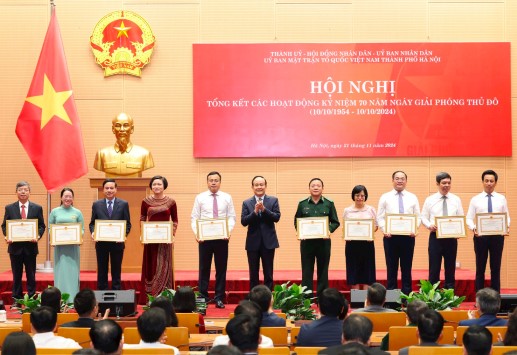Ghi nhận thành tích xuất sắc trong công tác chỉ đạo, triển khai thực hiện các hoạt động kỷ niệm 70 năm Ngày Giải phóng Thủ đô, về khen thưởng cấp thành phố, Thành ủy Hà Nội đã ban hành quyết định tặng Bằng khen của Ban Thường vụ Thành ủy cho 10 tập thể và 10 cá nhân; Chủ tịch UBND thành phố đã ký quyết định tặng Bằng khen cho 644 trường hợp, trong đó có 223 tập thể và 421 cá nhân. Báo Hànộimới và 2 Ban của Báo Hànộimới gồm Ban Xây dựng Đảng - Nội chính và Ban Chuyên san được tặng Bằng khen của Chủ tịch UBND thành phố vì có thành tích trong công tác tổ chức, triển khai các hoạt động kỷ niệm 70 năm Ngày Giải phóng Thủ đô (10/10/1954 - 10/10/2024).