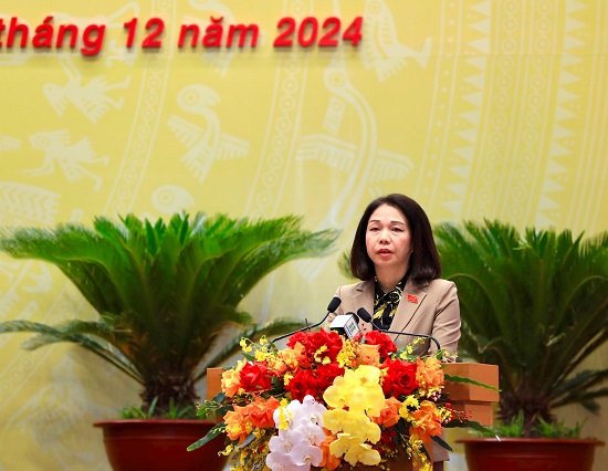 Phó Chủ tịch Thường trực HĐND Thành phố Phùng Thị Hồng Hà điều hành thông qua nghị quyết