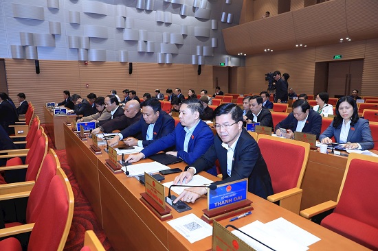 Các đại biểu HĐND thành phố Hà Nội biểu quyết thông qua Nghị quyết