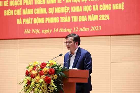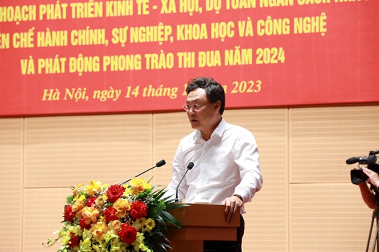 Chiều 14-12, UBND thành phố Hà Nội tổ chức hội nghị triển khai kế hoạch phát triển kinh tế - xã hội, dự toán ngân sách nhà nước, biên chế hành chính, sự nghiệp, khoa học - công nghệ và phát động phong trào thi đua năm 2024.