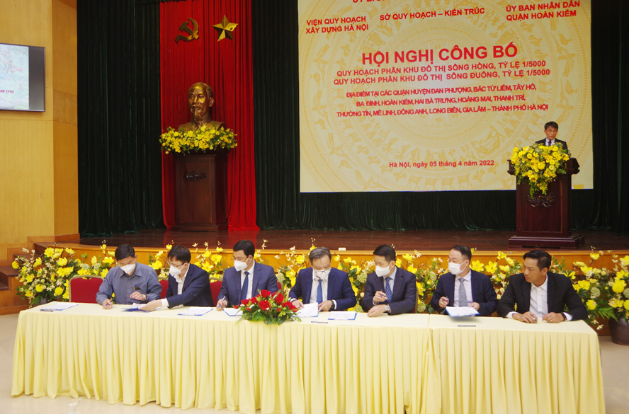 Chiều 5/4/2022, tại trụ sở UBND quận Hoàn Kiếm, Sở Quy hoạch - Kiến trúc, Viện Quy hoạch xây dựng Hà Nội phối hợp cùng UBND 13 quận, huyện tổ chức hội nghị công bố công khai nội dung quy hoạch phân khu đô thị sông Hồng và sông Đuống, tỷ lệ 1/5000 đã được phê duyệt.