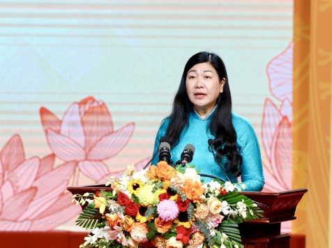 Chủ tịch Ủy ban MTTQ Việt Nam Thành phố Nguyễn Lan Hương phát biểu tại Lễ phát động