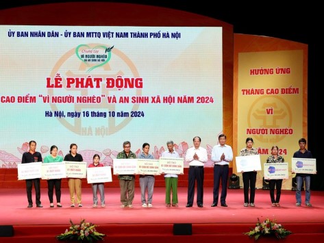 Phát biểu phát động Tháng cao điểm "Vì người nghèo" và an sinh xã hội năm 2024, Chủ tịch Ủy ban MTTQ Việt Nam Thành phố Nguyễn Lan Hương, Trưởng ban Vận động Quỹ "Vì người nghèo" Thành phố Hà Nội cho biết: Bảo đảm an sinh xã hội và thực hiện mục tiêu giảm nghèo bền vững là chủ trương xuyên suốt của Đảng, Nhà nước và thành phố Hà Nội để nâng cao chất lượng cuộc sống Nhân dân Thủ đô, góp phần ổn định chính trị, xã hội, tạo động lực để phát triển kinh tế. Các chính sách hỗ trợ giảm nghèo của Trung ương và Thành phố được thực hiện đúng, đủ, kịp thời. Thành phố luôn ưu tiên nguồn lực để đảm bảo an sinh xã hội và giảm nghèo bền vững.