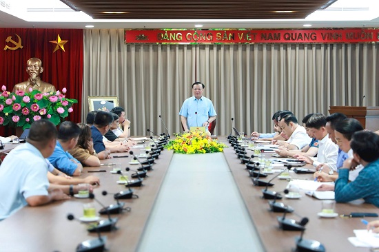Bí thư Thành ủy Hà Nội Đinh Tiến Dũng phát biểu tại buổi làm việc.