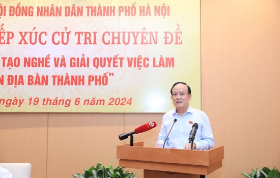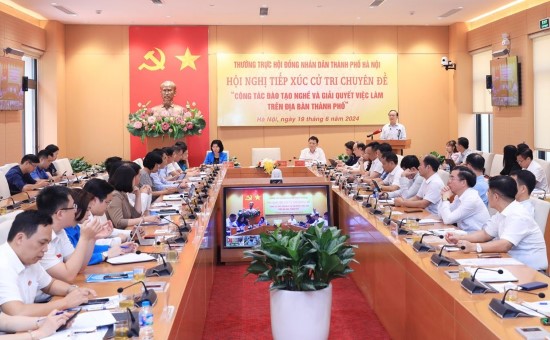 Sáng 19/6/2024, Thường trực HĐND thành phố Hà Nội tổ chức hội nghị tiếp xúc cử tri chuyên đề về Công tác đào tạo nghề và giải quyết việc làm trên địa bàn thành phố Hà Nội.