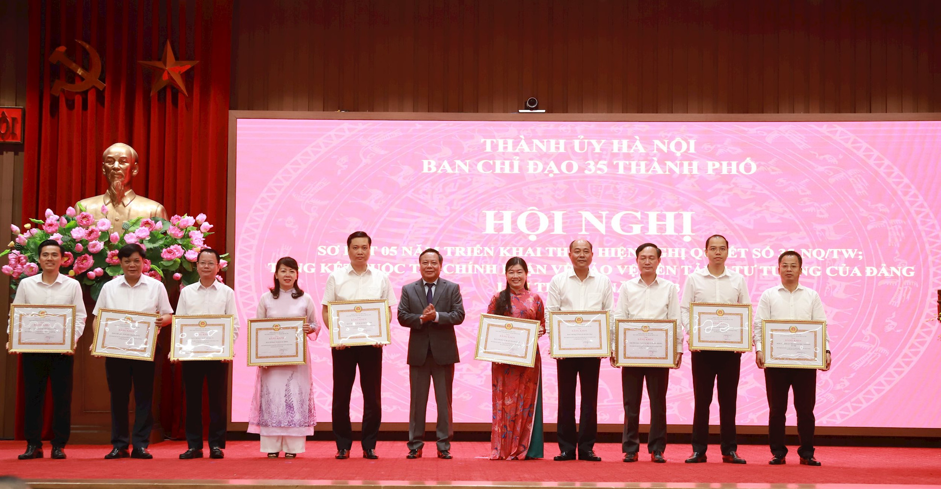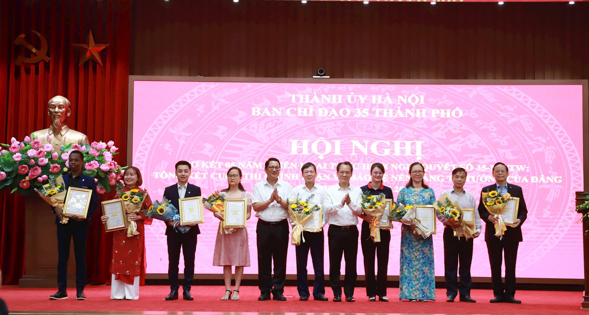Tại hội nghị, 10 tập thể và 10 cá nhân có thành tích xuất sắc trong thực hiện Nghị quyết số 35-NQ/TƯ đã được nhận Bằng khen của Ban Thường vụ Thành ủy Hà Nội.