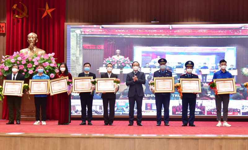 Tại hội nghị, thay mặt lãnh đạo Đảng và Nhà nước, Bí thư Thành ủy Đinh Tiến Dũng; Phó Bí thư Thường trực Thành ủy Nguyễn Thị Tuyến, Chủ tịch UBND thành phố Hà Nội Chu Ngọc Anh; Thứ trưởng Bộ Y tế Trần Văn Thuấn; Phó Bí thư Thành ủy, Chủ tịch HĐND thành phố Nguyễn Ngọc Tuấn đã trao Bằng khen của Thủ tướng Chính phủ tặng 56 tập thể và 27 cá nhân thuộc thành phố Hà Nội đã có thành tích xuất sắc trong công tác phòng, chống dịch Covid-19 trên địa bàn thành phố./.