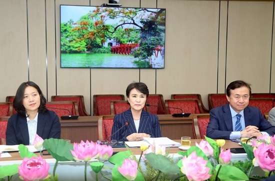 Đại sứ tỉnh Gyeonggi (Hàn Quốc) Kang Kum-sil tại buổi tiếp.