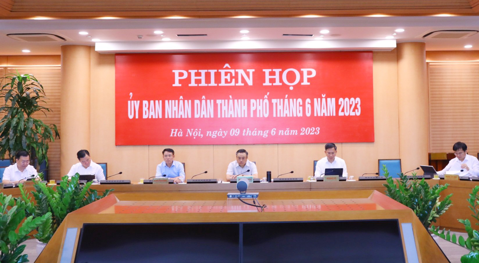 Sáng 9-6, Ủy viên Trung ương Đảng, Phó Bí thư Thành ủy, Chủ tịch UBND thành phố Hà Nội Trần Sỹ Thanh chủ trì phiên họp UBND thành phố thường kỳ tháng 6-2023 lần thứ hai, để xem xét một số nội dung trình kỳ họp giữa năm 2023 HĐND thành phố, theo chương trình công tác và chỉ đạo của lãnh đạo UBND thành phố.