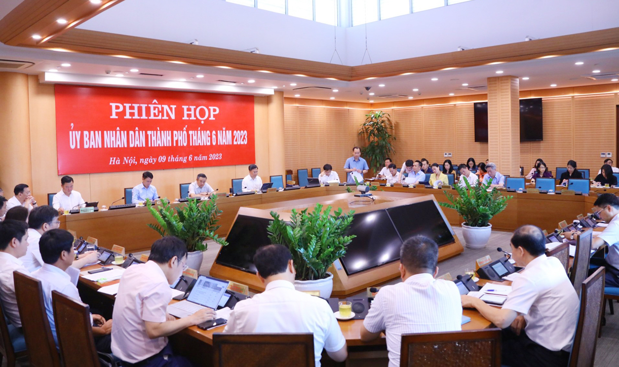 Chủ tịch UBND thành phố Hà Nội Trần Sỹ Thanh chủ trì phiên họp UBND thành phố thường kỳ tháng 6-2023.