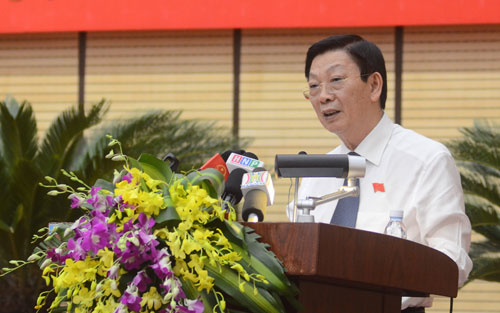 Thưa các vị đại biểu, nhiệm vụ 6 tháng của chúng ta còn rất nặng nề, cùng với việc hoàn thành kế hoạch của cả năm 2015, nhất là những chỉ tiêu tăng trưởng, kế hoạch xây dựng công trình trọng điểm; thành phố cũng phải tập trung vào rà soát, phấn đấu tốt để hoàn thành cao nhất các chỉ tiêu kế hoạch 5 năm 2011-2015, đồng thời chuẩn bị tốt cho kế hoạch phát triển kinh tế - xã hội giai đoạn 2016-2020. Trong khi đó, tình hình hiện tại dự báo vẫn tiếp tục khó khăn, nhất là về kinh tế thế giới và trong nước, thị trường sản xuất kinh doanh của các doanh nghiệp, về thể chế chính sách, cơ chế chính sách chưa hoàn thiện. Do vậy, cùng với những giải pháp đồng bộ, sự quyết liệt điều hành trong chỉ đạo và tổ chức thực hiện như nghị quyết đã nêu, thì cần những giải pháp thông minh trong ngắn hạn. UBND thành phố yêu cầu các cấp, các ngành bám sát chỉ tiêu, nhiệm vụ của ngành mình, cấp mình để có những biện pháp quyết liệt và sâu sát trong chỉ đạo điều hành để thực hiện được các chỉ tiêu... Nhân dịp này, thay mặt UBND thành phố, tôi kêu gọi các cử tri, các DN, các thành phần kinh tế hãy phát động thi đua, đồng lòng nhất trí, quyết tâm lao động giỏi, học tập tốt, lập nhiều thành tích chào mừng đại hội Đảng các cấp, góp phần hoàn thành tốt nhiệm vụ năm 2015 và 5 năm tiếp theo.