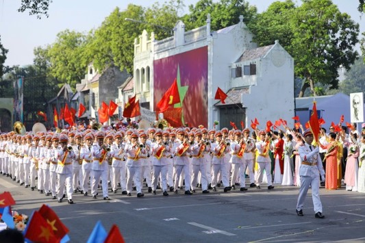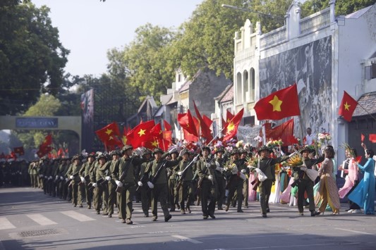 Điểm nhấn ấn tượng là màn thực cảnh tái hiện thời khắc lịch sử trọng đại của Thủ đô và đất nước ngày 10/10/1954, khi đoàn quân tiến về tiếp quản Thủ đô trong rợp trời cờ, hoa và niềm hân hoan chiến thắng, kết thúc 9 năm trường kỳ kháng chiến gian khổ, ác liệt với biết bao hy sinh, mất mát và tinh thần anh dũng, bất khuất của nhân dân ta trước một kẻ thù hùng mạnh, viết nên bản anh hùng ca trong sự nghiệp cách mạng của Đảng ta và dân tộc ta.