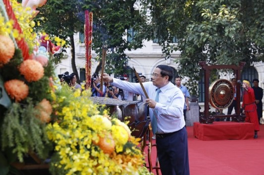 Thủ tướng Chính phủ Phạm Minh Chính dâng hương tại Tượng đài Vua Lý Thái Tổ trong chương trình Ngày hội Văn hóa vì hòa bình