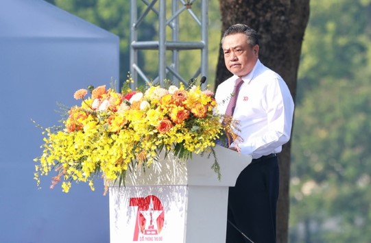 Ủy viên Trung ương Đảng, Phó Bí thư Thành ủy, Chủ tịch UBND thành phố Hà Nội Trần Sỹ Thanh phát biểu tại Ngày hội