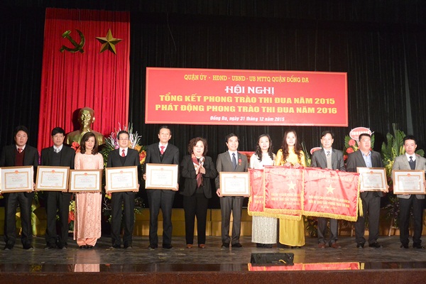 Chủ tịch HĐND TP Nguyễn Thị Bích Ngọc trao Cờ thi đua, Bằng khen tới các tập thể, cá nhân quận Đống Đa có nhiều thành tích trong phong trào thi đua năm 2015