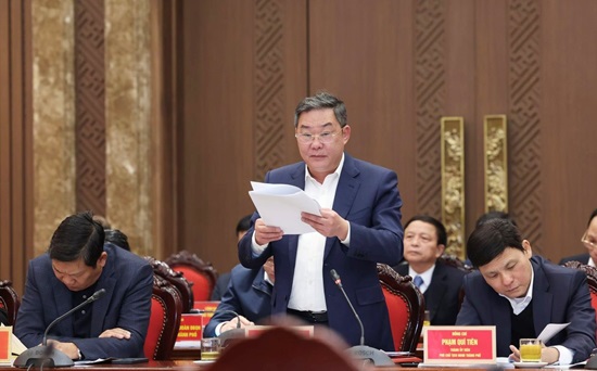 Ủy viên Ban Thường vụ Thành ủy, Phó Chủ tịch Thường trực UBND thành phố Hà Nội Lê Hồng Sơn báo cáo nội dung tiếp thu, chỉnh lý Dự thảo Luật Thủ đô (sửa đổi).