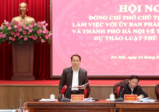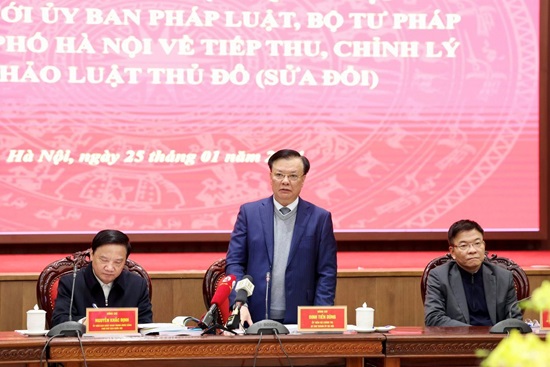 Chiều 25-1, tại trụ sở Thành ủy Hà Nội, đồng chí Nguyễn Khắc Định, Ủy viên Trung ương Đảng, Phó Chủ tịch Quốc hội có cuộc làm việc với Ủy ban Pháp luật của Quốc hội, Bộ Tư pháp và thành phố Hà Nội về tiếp thu, chỉnh lý Dự thảo Luật Thủ đô (sửa đổi).
