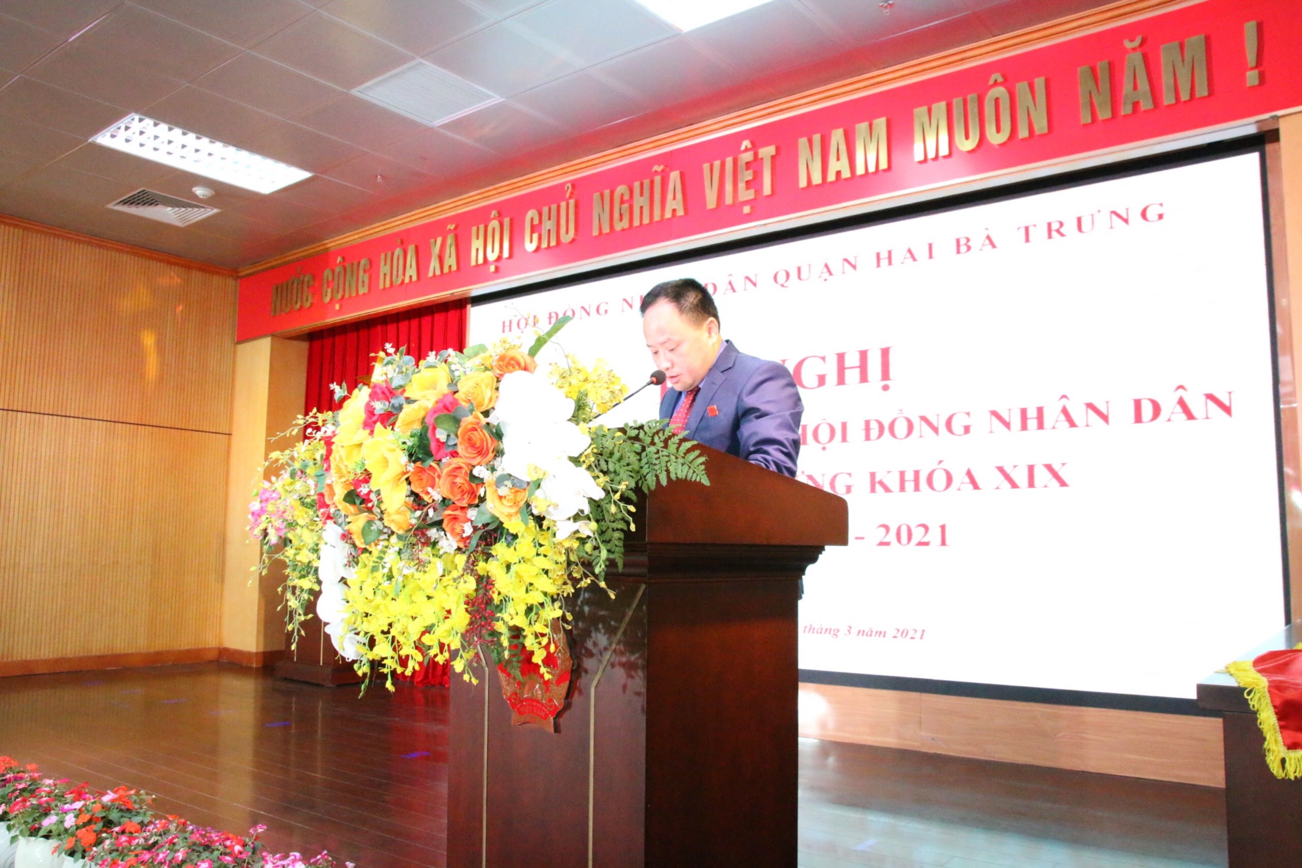 Ngày 11 tháng 3 năm 2021, tại Trụ sở HĐND-UBND quận Hai Bà Trưng. HĐND quận đã long trọng tổ chức Hội nghị tổng kết hoạt động HĐND quận khóa XIX, nhiệm kỳ 2016 - 2021. Tới dự Hội nghị có đồng chí Trần Quyết Thắng - Phó Bí thư Thường trực Quận ủy - Chủ tịch HĐND quận; đồng chí Nguyễn Quang Trung - Phó Bí thư Quận ủy - Chủ tịch UBND quận. Cùng dự còn có các đồngc chí trong Ban Thường vụ Quận ủy, Thường trực HĐND, lãnh đạo UBND, UB.MTTQ quận; các vị đại biểu HĐND quận khóa XIX; các đồng chí là trưởng các phòng, ban; Bí thư Đảng ủy, Thường trực HĐND, Chủ tịch UBND, Chủ tịch UB.MTTQ và đại diện lãnh đạo các Ban HĐND 18 phường.