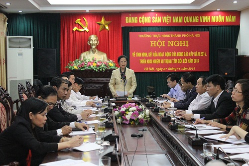 Phát biểu kết luận hội nghị, Chủ tịch HĐND TP Ngô Thị Doãn Thanh khẳng định, bám sát chỉ đạo của Trung ương, nhiệm vụ trọng tâm của Thành phố, HĐND các cấp đã nhanh chóng vào cuộc, phối hợp chặt chẽ với UBND và Ủy ban MTTQ cùng cấp triển khai nhiệm vụ phát triển kinh tế xã hội, bảo đảm an ninh quốc phòng theo tinh thần Nghị quyết của cấp ủy và HĐND Thành phố ngay từ ngày đầu, tháng đầu, quý đầu của năm 2014. Kết quả đạt được là kinh tế tiếp tục tăng trưởng khá, GRDP năm 2014 ước tăng 8,6%, đạt kế hoạch đề ra. Thu ngân sách trên địa bàn ước 128.902 tỷ đồng, đạt 102,1% dự toán HĐND TP giao, chi ngân sách địa phương đạt 110% dự toán năm… Thực hiện “Năm trật tự và văn minh đô thị” đạt được chuyển biến tốt. Công tác cải cách hành chính, cải thiện môi trường đầu tư, môi trường sản xuất kinh doanh, tháo gỡ khó khăn cho doanh nghiệp được triển khai thường xuyên. Giáo dục đào tạo, y tế có chuyển biến tích cực, thu nhiều kết quả tốt. Hoạt động kỷ niệm 60 năm Ngày Giải phóng Thủ đô để lại dấu ấn tốt đẹp và tạo động lực cho phát triển Thành phố. Năm 2014, công tác an sinh xã hội được chăm lo, chu đáo. An ninh chính trị được giữ vững, trật tự an toàn xã hộ được bảo đảm.