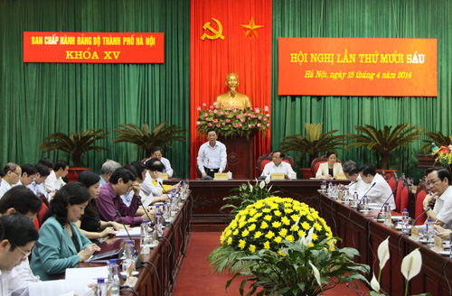 Ngày 15/4, Ban Chấp hành Đảng bộ TP Hà Nội tổ chức hội nghị lần thứ XVI, đánh giá tình hình thực hiện nhiệm vụ phát triển kinh tế - xã hội quý I, nhiệm vụ, giải pháp trọng tâm quý II và những tháng cuối năm 2014. Đồng chí Phạm Quang Nghị, Ủy viên Bộ Chính trị, Bí thư Thành ủy chủ trì hội nghị cùng các đồng chí: Nguyễn Thế Thảo, Chủ tịch UBND TP; Ngô Thị Doãn Thanh, Chủ tịch HĐND TP; Nguyễn Công Soái, Phó Bí thư Thường trực Thành ủy.
