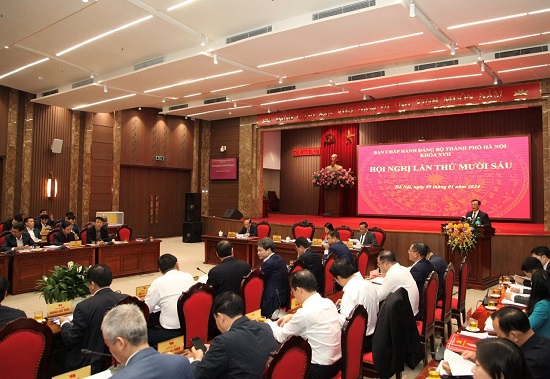 Sáng 09/01/2024, Ban Chấp hành Đảng bộ thành phố Hà Nội tổ chức Hội nghị lần thứ mười sáu. Chủ trì hội nghị có các đồng chí: Ủy viên Bộ Chính trị, Bí thư Thành ủy, Trưởng đoàn đại biểu Quốc hội thành phố Đinh Tiến Dũng; Ủy viên Trung ương Đảng, Phó Bí thư Thường trực Thành ủy Nguyễn Thị Tuyến; Phó Bí thư Thành ủy, Chủ tịch HĐND thành phố, Phó Trưởng đoàn ĐBQH thành phố Nguyễn Ngọc Tuấn; Phó Bí thư Thành ủy Nguyễn Văn Phong.