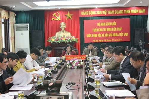 Sáng ngày 8/1, tại Văn phòng Đoàn ĐBQH và HĐND thành phố Hà Nội, Lãnh đạo Đoàn ĐBQH, các sở, ngành Thành phố đã tham dự Hội nghị trực tuyến triển khai thi hành Hiến pháp nước CHXHCN Việt Nam. Theo Kế hoạch triển khai thi hành Hiến pháp, có hai nội dung cơ bản là tuyên truyền, phổ biến Hiến pháp và ra soát, sửa đổi, bãi bỏ hoặc ban hành mới văn bản pháp luật phù hợp với Hiến pháp.