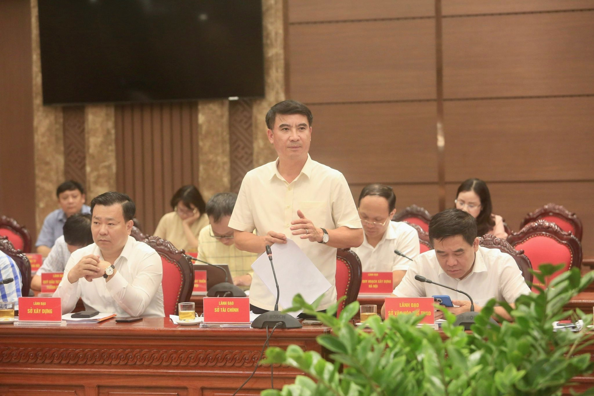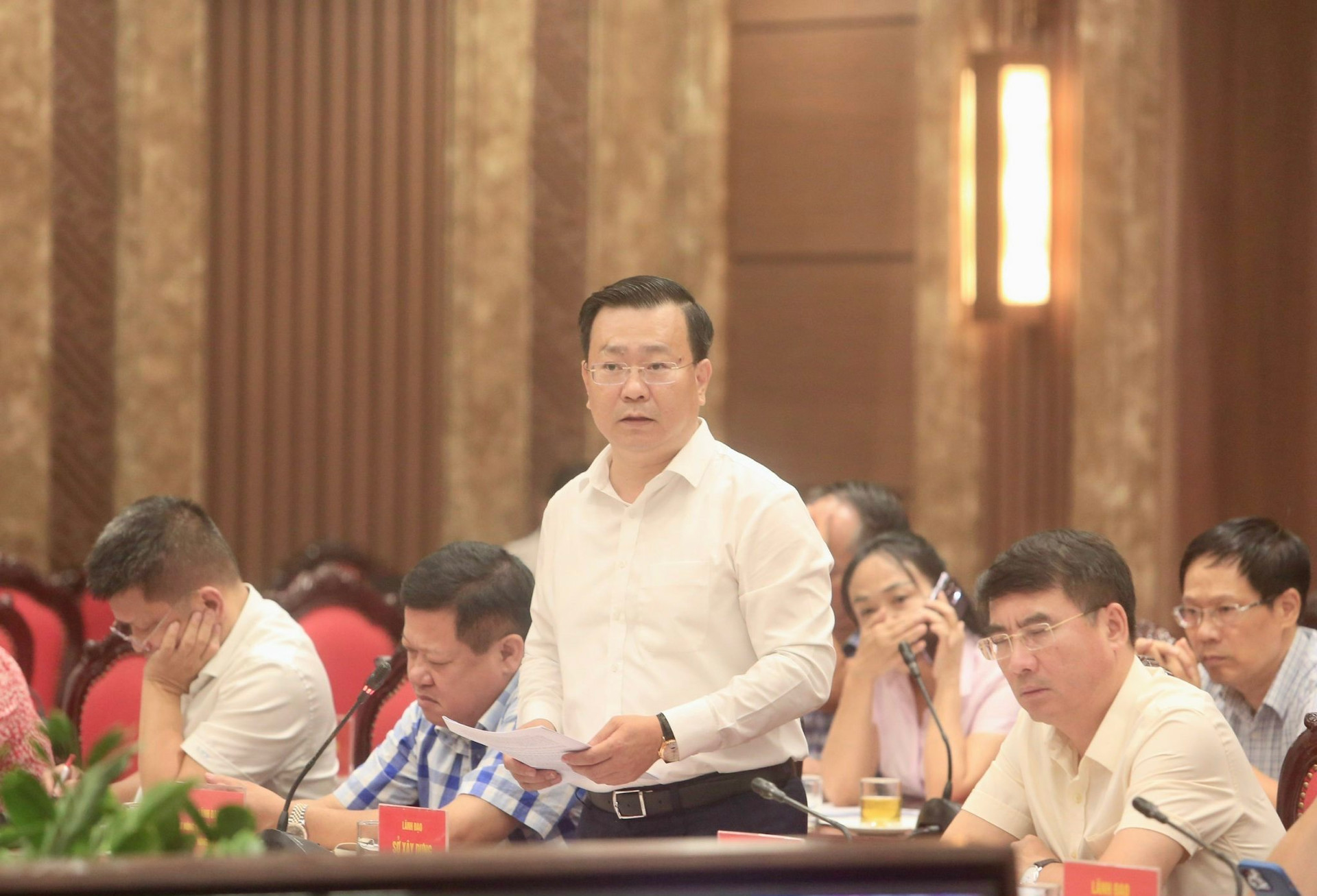 Các đồng chí lãnh đạo thành phố Hà Nội chủ trì hội nghị