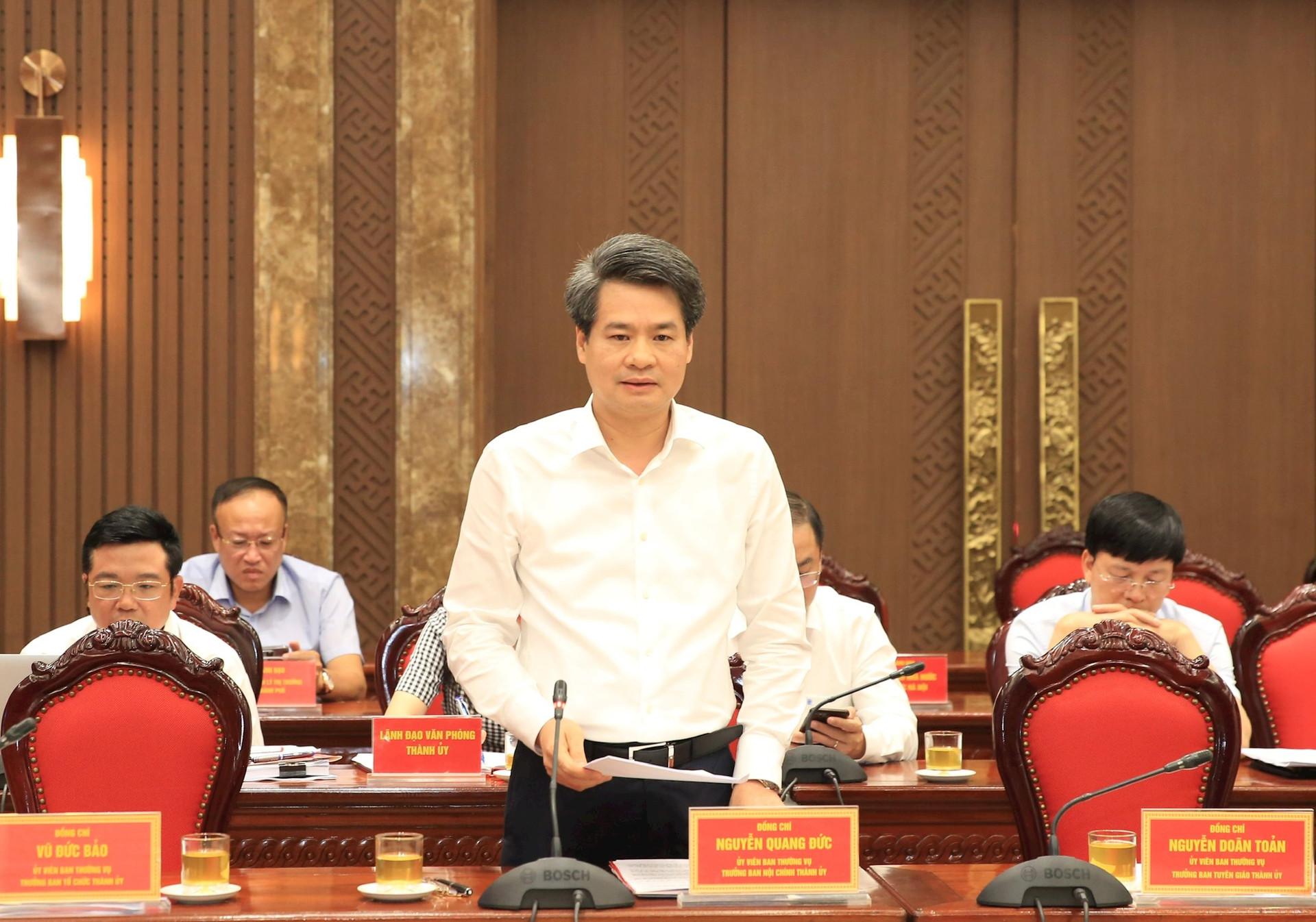 Trưởng ban Nội chính Thành ủy Nguyễn Quang Đức phát biểu
