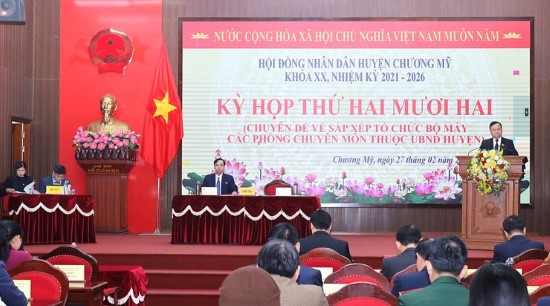 Ngày 27/02/2025, HĐND huyện Chương Mỹ tổ chức kỳ họp thứ hai mươi (kỳ họp chuyên đề), thông qua nghị quyết về phương án sắp xếp tổ chức bộ máy thuộc UBND huyện.