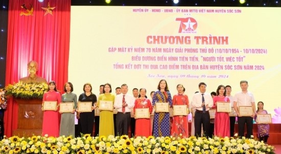 Ngày 9/10, huyện Sóc Sơn tổ chức Chương trình gặp mặt kỷ niệm 70 năm Ngày Giải phóng Thủ đô (10/10/1954 - 10/10/2024); biểu dương điển hình tiên tiến, người tốt - việc tốt; tổng kết đợt thi đua cao điểm trên địa bàn huyện Sóc Sơn năm 2024.