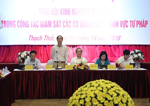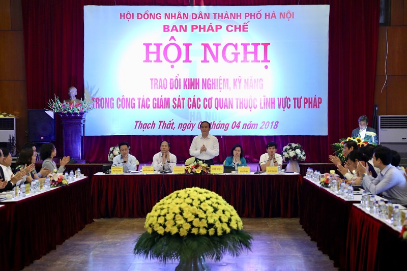Thực hiện Chương trình, kế hoạch công tác năm 2018 của Ban pháp chế HĐND Thành phố, được sự đồng ý của Thường trực HĐND Thành phố, ngày 06/4/2018, Ban pháp chế HĐND Thành phố đã tổ chức hội nghị giao ban chuyên đề giữa Ban Pháp chế HĐND Thành phố với Ban Pháp chế HĐND các quận, huyện, thị xã để “trao đổi về kinh nghiệm, kỹ năng trong công tác giám sát các cơ quan thuộc lĩnh vực tư pháp.