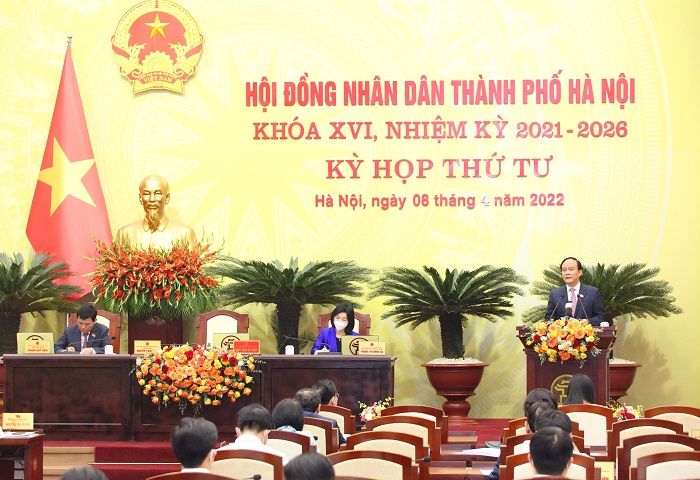 Sáng 08/4/2022, tại trụ sở HĐND - UBND TP Hà Nội, HĐND TP Hà Nội khóa XVI, nhiệm kỳ 2021-2026 tổ chức Kỳ họp thứ tư (kỳ họp chuyên đề) để xem xét, quyết định các nội dung quan trọng thuộc thẩm quyền.