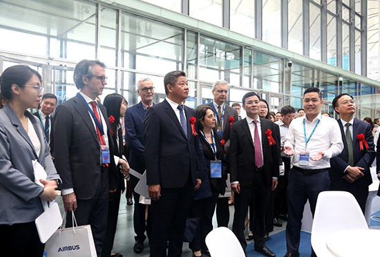 Các đại biểu khai mạc Hội chợ Triển lãm quốc tế Mạng lưới cao cấp sản xuất, cung ứng, tiêu dùng bền vững lĩnh vực công nghiệp hàng không - Hà Nội 2023