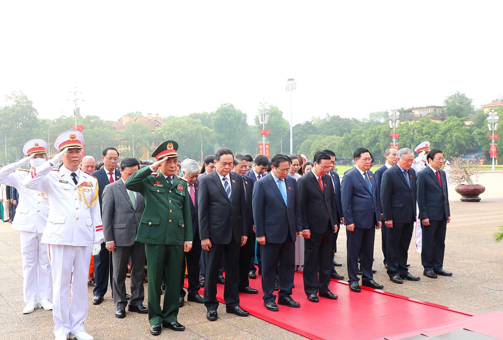 Trước khi bước vào phiên khai mạc kỳ họp, các đồng chí lãnh đạo Đảng, Nhà nước, Ủy ban Trung ương Mặt trận Tổ quốc Việt Nam, các vị đại biểu Quốc hội đã vào Lăng viếng Chủ tịch Hồ Chí Minh.