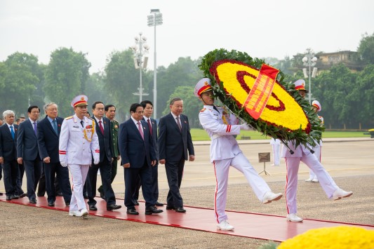 Các đồng chí lãnh đạo Đảng, Nhà nước và các đại biểu Quốc hội vào Lăng viếng Chủ tịch Hồ Chí Minh. Ảnh: media.quochoi.vn