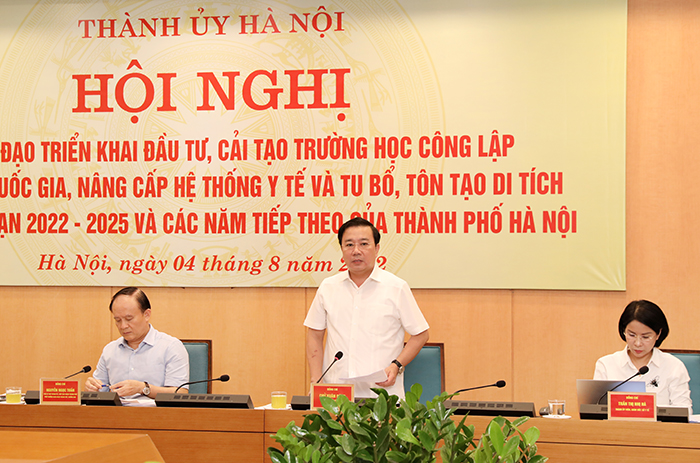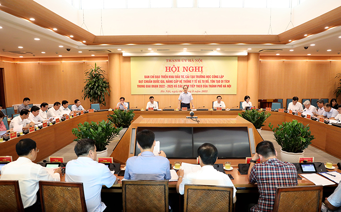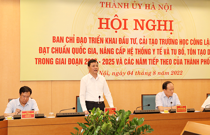 Chiều 04/8/2022, Ban Chỉ đạo triển khai đầu tư, cải tạo trường học công lập đạt chuẩn quốc gia, nâng cấp hệ thống y tế và tu bổ, tôn tạo di tích trong giai đoạn 2022-2025 và các năm tiếp theo của thành phố Hà Nội tổ chức hội nghị triển khai một số nhiệm vụ trọng tâm của Ban chỉ đạo.
