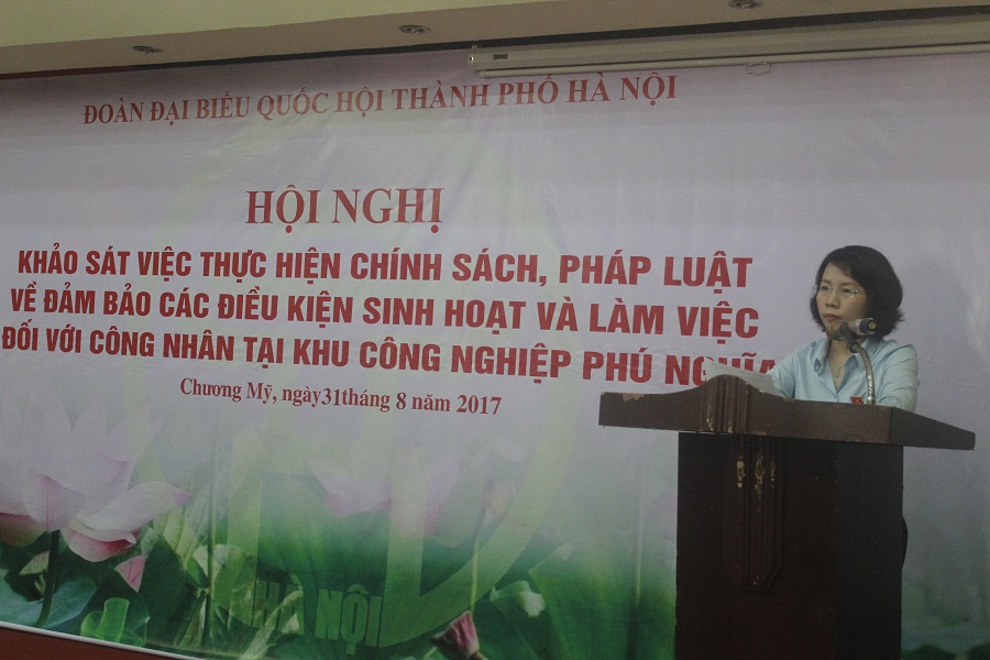 Sáng 31/8, Đoàn khảo sát (Tổ số 2) của Đoàn Đại biểu Quốc hội TP Hà Nội đã làm việc với Công ty cổ phần (CTCP) Tập đoàn Phú Mỹ về việc thực hiện chính sách, pháp luật về bảo đảm các điều kiện sinh hoạt và làm việc đối với công nhân tại các Khu công nghiệp (KCN) Phú Nghĩa (Chương Mỹ) từ năm 2013-2017.
