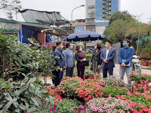 Đoàn khảo sát tại chợ hoa Tết Vạn Phúc, quận Hà Đông