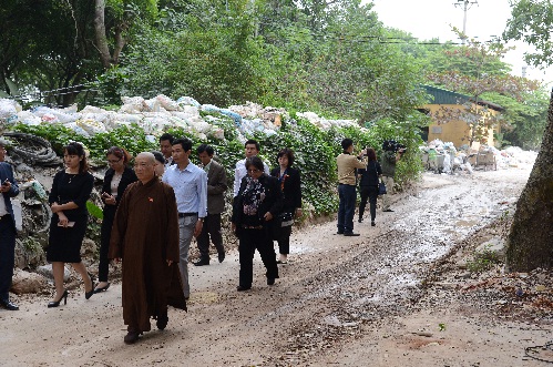 Đoàn khảo sát bãi tập kết chất thải làng nghề xã Bát Tràng, chưa đảm bảo vệ sinh môi trường, nơi tập kết chất thải gần trường Tiểu học và Trạm y tế xã