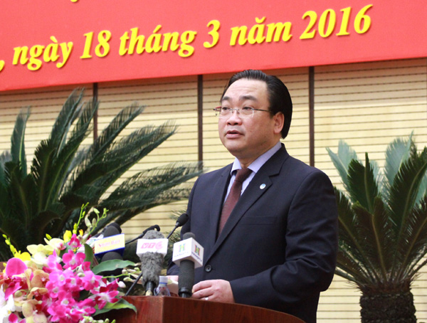 Đồng chí Bí thư Thành ủy Hoàng Trung Hải phát biểu tại kỳ họp