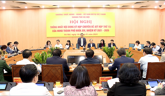 Chiều 19/1/2024,Thường trực HĐND, UBND, Ủy ban Mặt trận Tổ quốc Việt Nam thành phố Hà Nội tổ chức Hội nghị thống nhất nội dung kỳ họp chuyên đề (kỳ họp thứ 15) tháng 3/2024 của HĐND Thành phố khóa XVI, nhiệm kỳ 2021-2026.