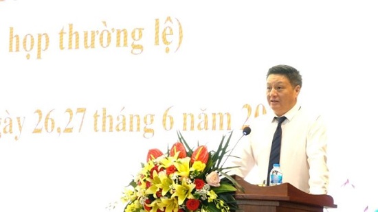 Bí thư Huyện ủy Bùi Hoàng Phan phát biểu tại kỳ họp