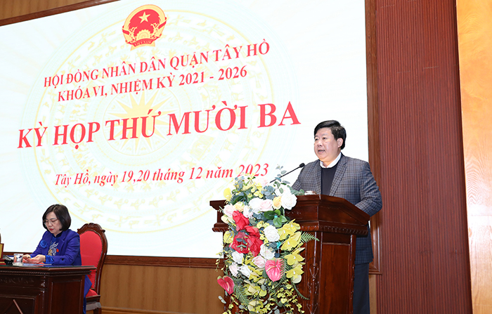 Báo cáo của UBND quận trình tại kỳ họp cho thấy, năm 2023, mặc dù còn gặp nhiều khó khăn, song với quyết tâm chính trị và tinh thần đoàn kết, trách nhiệm, quận Tây Hồ đã hoàn thành và hoàn thành vượt mức 21/21 chỉ tiêu về phát triển kinh tế - xã hội năm 2023. Giá trị sản xuất công nghiệp ngoài quốc doanh của quận ước đạt 1.106,8 tỷ đồng, tăng 9,8% so với cùng kỳ năm trước. Doanh thu thương mại, dịch vụ, du lịch ước đạt 91.745,4 tỷ đồng tăng 19,2% so với cùng kỳ năm 2022. Thu ngân sách ước đạt 112% kế hoạch năm ; Chi ngân sách ước đạt 93% kế hoạch giao, trong đó chi đầu tư xây dựng đạt 92% Kế hoạch và bằng 415% kế hoạch Thành phố giao.