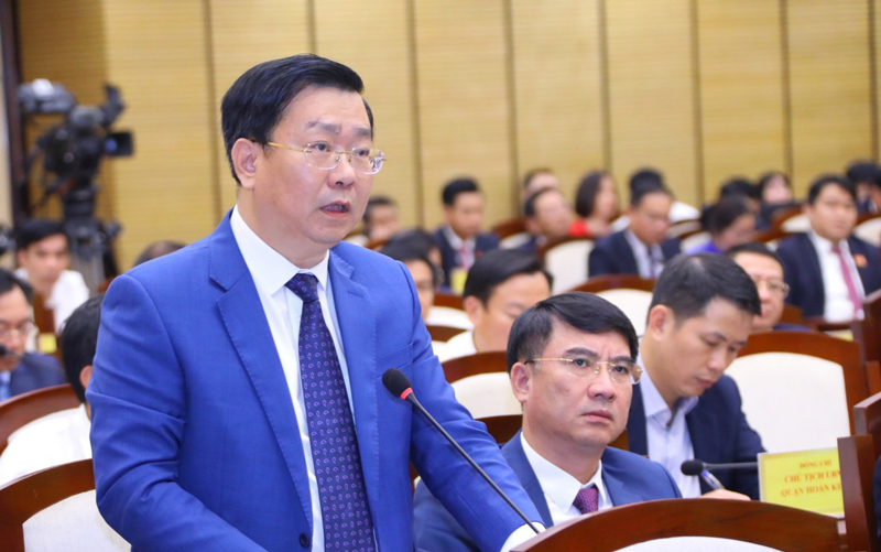 Chủ tịch UBND quận Hoàng Mai Nguyễn Minh Tâm trả lời một số ý kiến của các đại biểu HĐND thành phố nêu