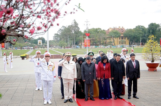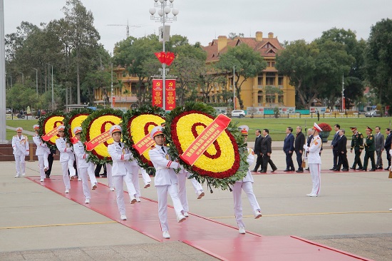Trước anh linh Chủ tịch Hồ Chí Minh, Đoàn đại biểu bày tỏ lòng biết ơn vô hạn công lao trời biển của Người đối với sự nghiệp cách mạng của Đảng và dân tộc ta. Tưởng nhớ Người, toàn Đảng, toàn quân, toàn dân tiếp tục ra sức phấn đấu, thi đua, đẩy mạnh học tập và làm theo tư tưởng, đạo đức, phong cách Hồ Chí Minh, phát huy cao độ truyền thống yêu nước, đoàn kết, tinh thần tự tin, tự chủ, tự lực, tự cường và tự hào dân tộc; quyết tâm với ý chí cao nhất thực hiện thắng lợi Nghị quyết Đại hội XIII của Đảng; sẵn sàng đưa đất nước bước vào kỷ nguyên mới - kỷ nguyên vươn mình của dân tộc.