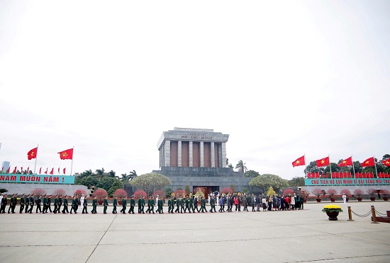 Các đoàn vào Lăng viếng Chủ tịch Hồ Chí Minh sáng 3-2. Ảnh: Viết Thành